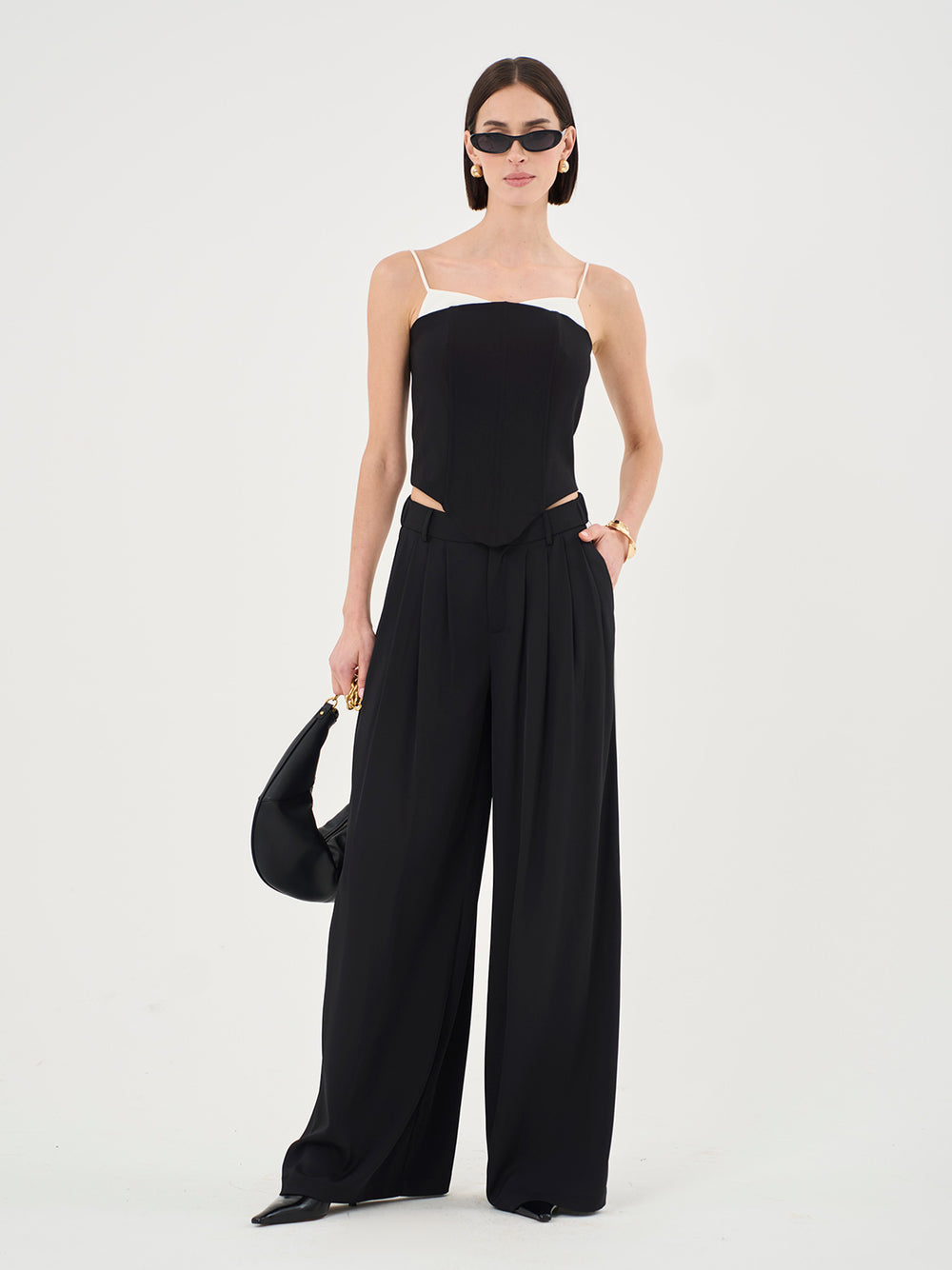 Tall Highwaisted Palazzo Pleated Pants In Black & White - Part Of A Set